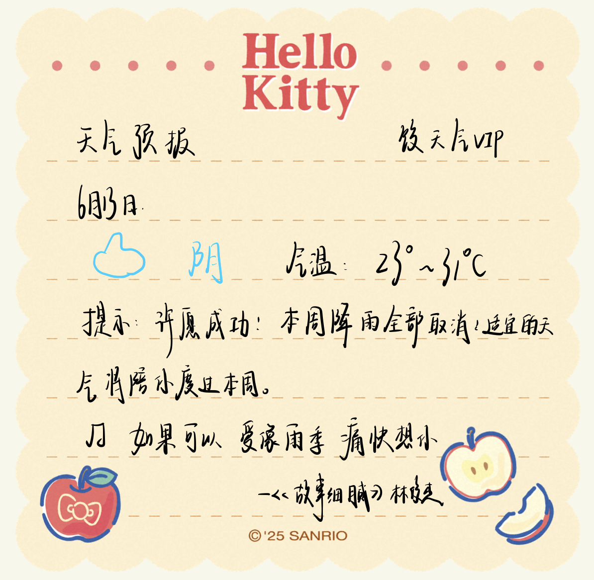 提示:恭喜你!本周下雨全部取消!适宜的温度送给主播!