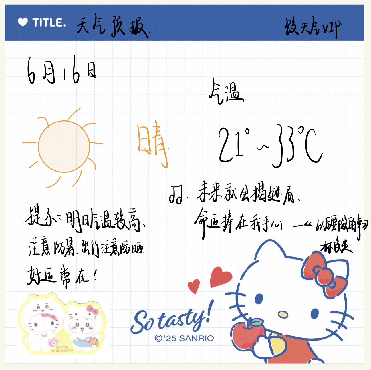 提示:明日气温较高 注意防暑 出行注意防晒 好运常在!