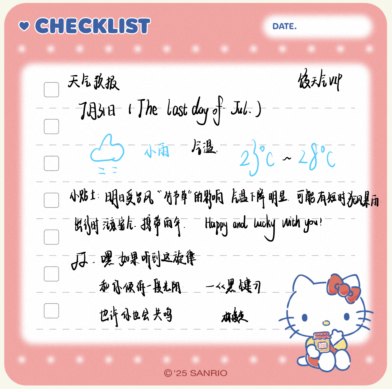 7月31日 The last day of Jul.